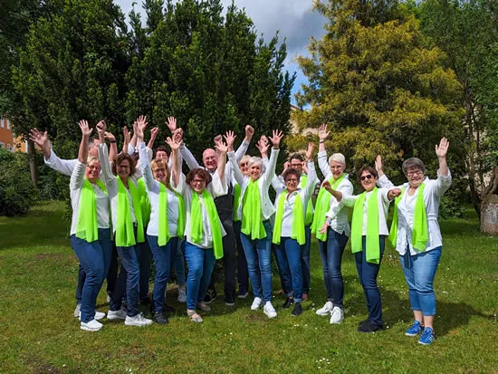 Anfang 2009 machte sich Petra Sauerbeck aus Wassermungenau auf, Gleichgesinnte zur Gründung eines Gospelchores zu finden. Die Gründung erfolgte am 21.09.2009. Die Suche nach einem Chorleiter gestaltete sich ziemlich schwierig. Glücklicherweise fand man mit Wolf-Dieter Süßenguth aus Großweingarten einen kompetenten und begnadeten Sänger und Chorleiter, der von dieser Idee begeistert war. Querbeet – so der Name des Gospelchores - ist eine Hommage an die Vielfalt in der Natur und die heimischen Gärten. Das Erkennungszeichen des Chores ist deshalb auch ein auffällig grüner Schal, der bei Veranstaltungen immer ein Eyecatcher ist. Vielfältig ist auch das breitgefächerte Repertoire, das von christlichen Gospelsongs, fröhlichen fremdländischen Volksweisen bis hin zu gefühlvollen deutschen Liedern mit unterschiedlichem Schwierigkeitsgrad reicht, Querbeet halt. Chorleiter Süßenguth blickt mit einem zwinkernden Auge auf die erste Zeit des Chores zurück, denn die ungewohnten Liedertexte waren anfangs für die Sängerinnen und Sänger erstmal gewöhnungsbedürftig und so mancher musste seine Komfortzone verlassen und richtig pauken. Trotz der Herausforderung oder gerade auch deswegen, sind die Mitglieder im Chor mit Begeisterung dabei und für alle steht zum einen die Lust am Singen und zum anderen der „Spaß an der Freud“ im Vordergrund. Immer gibt es in den Proben etwas zu Lachen, beim Nachhause gehen hat jeder seinen persönlichen Ohrwurm und alle freuen sich wieder auf die nächste Probe. Die Coronakrise hat dem Chor keine Verluste beschert, was äußerst erfreulich ist. Trotzdem werden immer gerne neue Mitglieder aufgenommen, alle Stimmlagen sind herzlich willkommen und keiner braucht Angst vorm Vorsingen zu haben – so etwas gibt’s hier nicht. Proben sind immer montags im evangelischen Gemeindehaus Wassermungenau von 19:30 bis 21:00 Uhr. In der Vergangenheit durfte der Chor auftreten bei Taufen, Hochzeiten, Geburtstagen, auf Weihnachtsmärkten und in den Nürnberger Justizanstalten. Die Sängerinnen und Sänger, die alle aus der Region sind, freuen sich auf künftige gesangliche Herausforderungen.