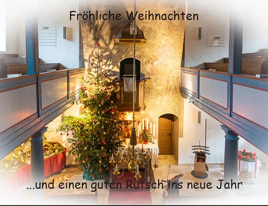 Gerne können Sie auch einen der Gottesdienste an Weihnachten besuchen, angefangen mit der Christvesper am 24.12 um 15:00 Uhr oder das Krippenspiel um 16:30 mit dem Gottesdienstteam und zu guter letzt findet um 21:30Uhr noch die Christmette statt. Alle anderen Termin bis zum 31.12 sind der Homepage zu entnehmen bzw. dem Kirchenblatt. Die wahren Geschenke liegen nicht unter dem Weihnachtsbaum. Sie sitzen in liebender Runde besinnlich beisammen und sind dankbar über ihr großes Glück miteinander. Der Kirchenvorstand wünscht Ihnen ein gesegnetes Weihnachtsfest und einen guten Rutsch ins neue Jahr.