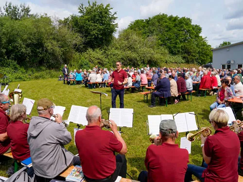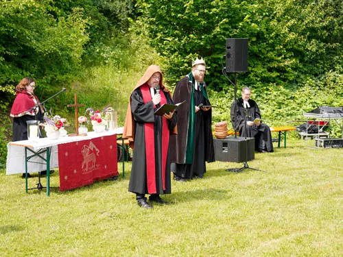 Bei traumhaftem Wetter fanden sich am Pfingstmontag rund 250 Besucher am Feuerwehrhaus der Feuerwehr Aurachhöhe in Barthelmesaurach ein, um gemeinsam den Gottesdienst zu feiern. Der letzte Gottesdienst dieser Art lag bereits vier Jahre zurück, und so war die Vorfreude auf die festliche Zusammenkunft spürbar.