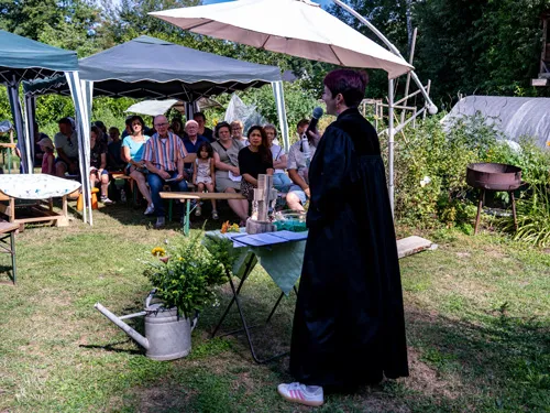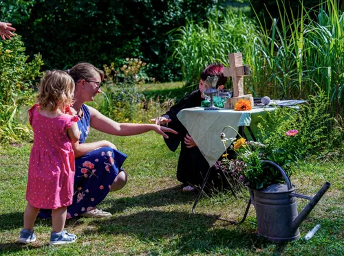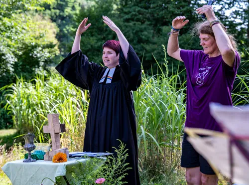 Zwischen Bäumen und Bachlauf fand der alljährliche Familiengottesdienst statt, der Jung und Alt berührte.