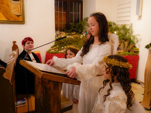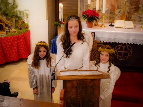 Musikalisch begleitet wurde die Andacht vom Posaunenchor, der eine besondere Atmosphäre schuf. Der Einzug des Christkindes (Ellen Rinneberg) und seinen beiden Engelchen (Alina Hacker und Marlene Danner) am Ende, war eines der Höhepunkte.