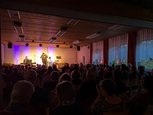 Mit seinem unverwechselbaren fränkischen Humor brachte Hannes Schott das Publikum reihenweise zum Lachen. Musikalisch begleitet von seinem Studienfreund Wolfgang Böhm, einem echten Drauracher, entstand ein Abend, der Herz und Zwerchfell gleichermaßen bewegte.