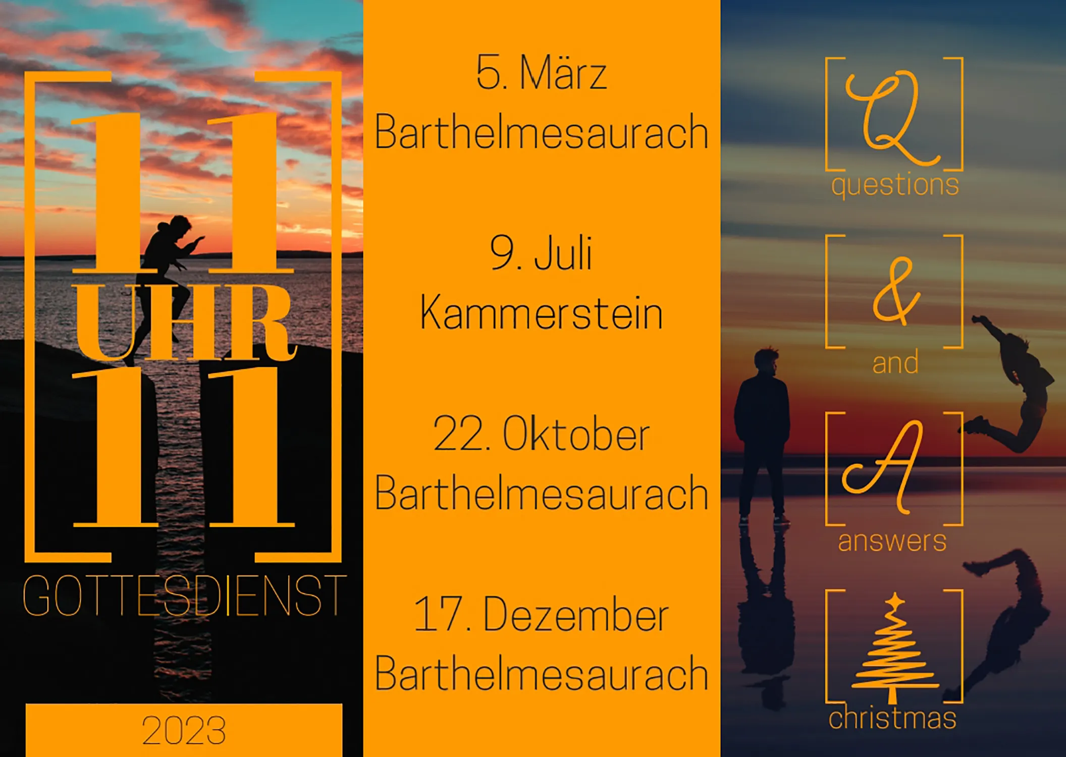 Auch dieses Jahr finden wieder vier 11 Uhr 11 Gottesdienste statt, mit viel Engagement gestalten die Jugendlichen aus den Kirchengemeinden Barthelmesaurach und Kammerstein diese ausgerwöhnliche Art von Gottesdienst. Für Jeden ist etwas dabei. Die Location wird jeweils kurz vorher bekannt gegeben.